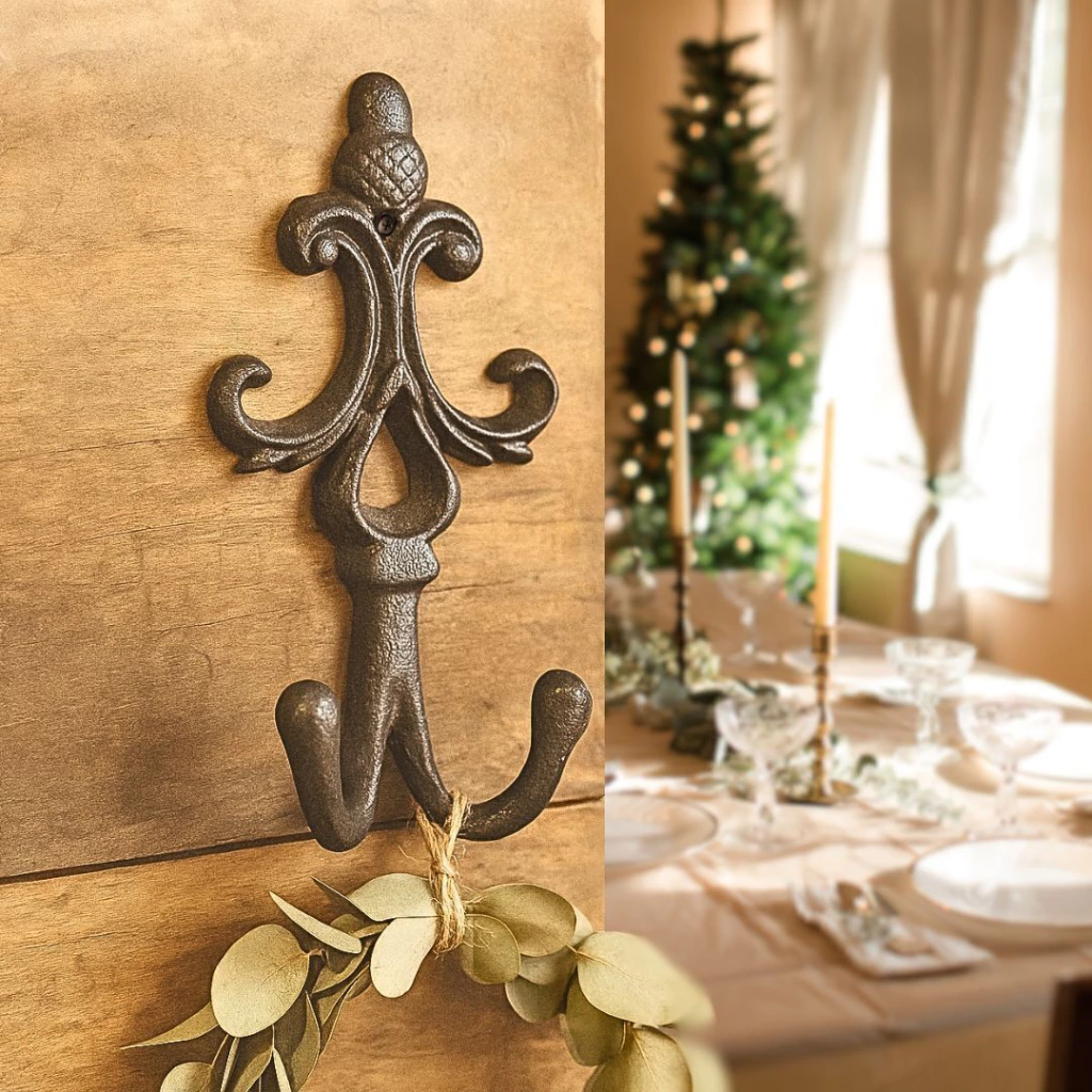 Com dois apoios firmes e a flor-de-lis coroando o design, este gancho de ferro fundido oferece praticidade com beleza. Ideal para organizar casacos, chaves, acessórios, guirlanda.. Sua presença marcante valoriza ambientes rústicos e clássicos.